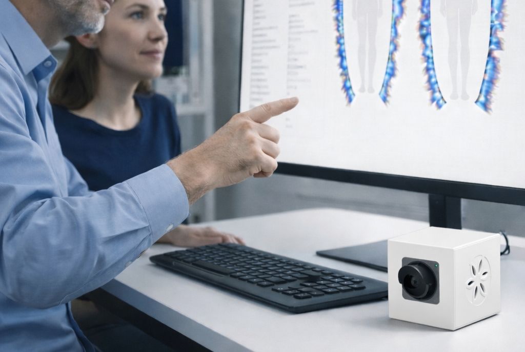 Ces photons sont captés par un système optique et enregistrés par ordinateur. L’analyse informatique permet d’extraire des paramètres quantifiables.